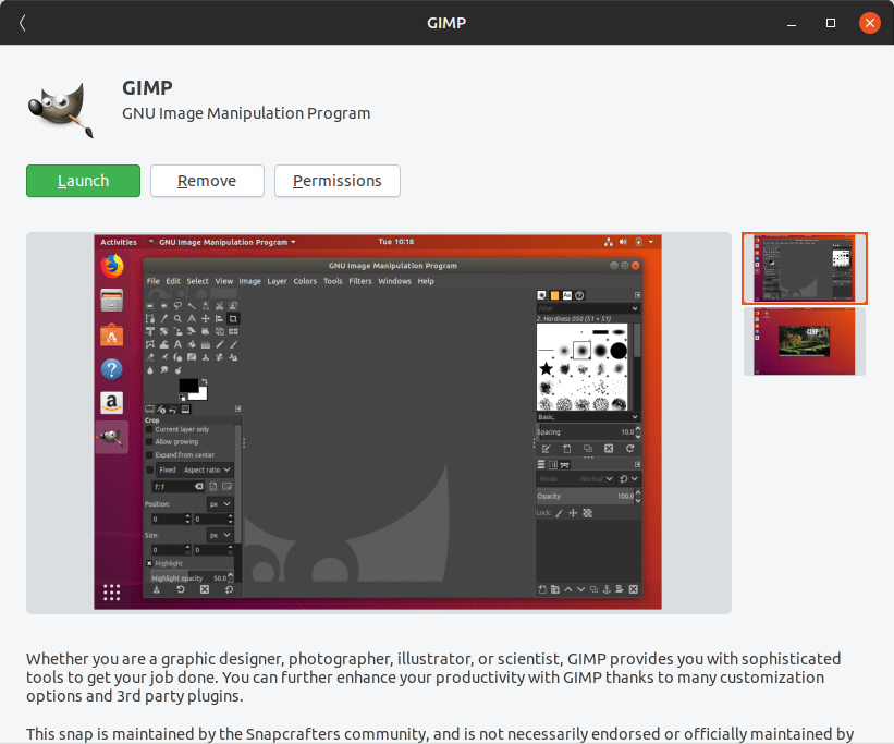 $ snap interfaces gimp Slot Plug :home gimp,gnome-characters,gnome-logs - gimp:cups-control - gimp:removable-media (...)