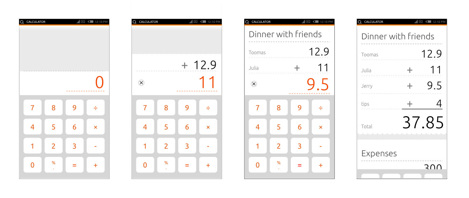 There were a lot of questions about the visual design of our concepts so far, so this week we thought we’d try sharing our key journeys in a different style of wireframe. Here is a closer look at the calculator app.