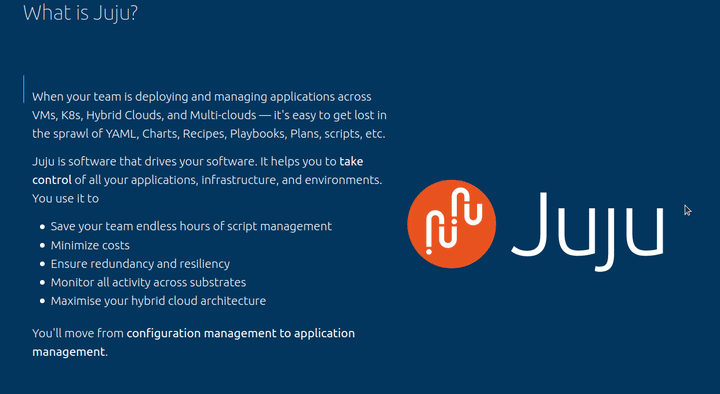 We also took the opportunity to redesign the homepage on juju.is. Notice the new section “What is Juju?” and it’s great animation. We will be publishing a blog post about this section soon.