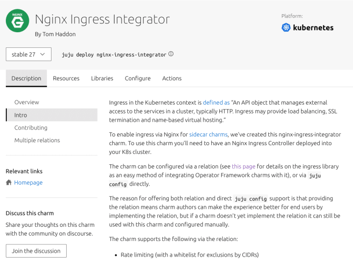 The “Docs” tab is populated by Discourse. Many charms have good documentation, but not here (mostly, in the ReadMe instead).