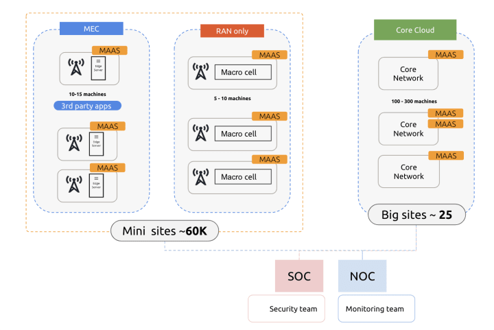 The Telco cloud use case is interesting because there are different purposes for Bare Metal that we have identified. The first part is the mini-sites called MEC and RAN, where they install cell towers to the base stations. There are between 5-15 machines per site and one site represents 1 MAAS instance. In the current setup above we can anticipate growing these mini-sites to around 60K sites all over the country. The second part is their core network, which they need to run their services. In the example setup, there are between 100-300 machines per Core site and one core site could be governed by 1 or 2 MAAS instances. Given that this is the scale, image management is still a problem, but instead of dealing with 4 MAAS instances, we’re talking about 25 core cloud sites + 60K mini-sites. Working images the current way is quite difficult.