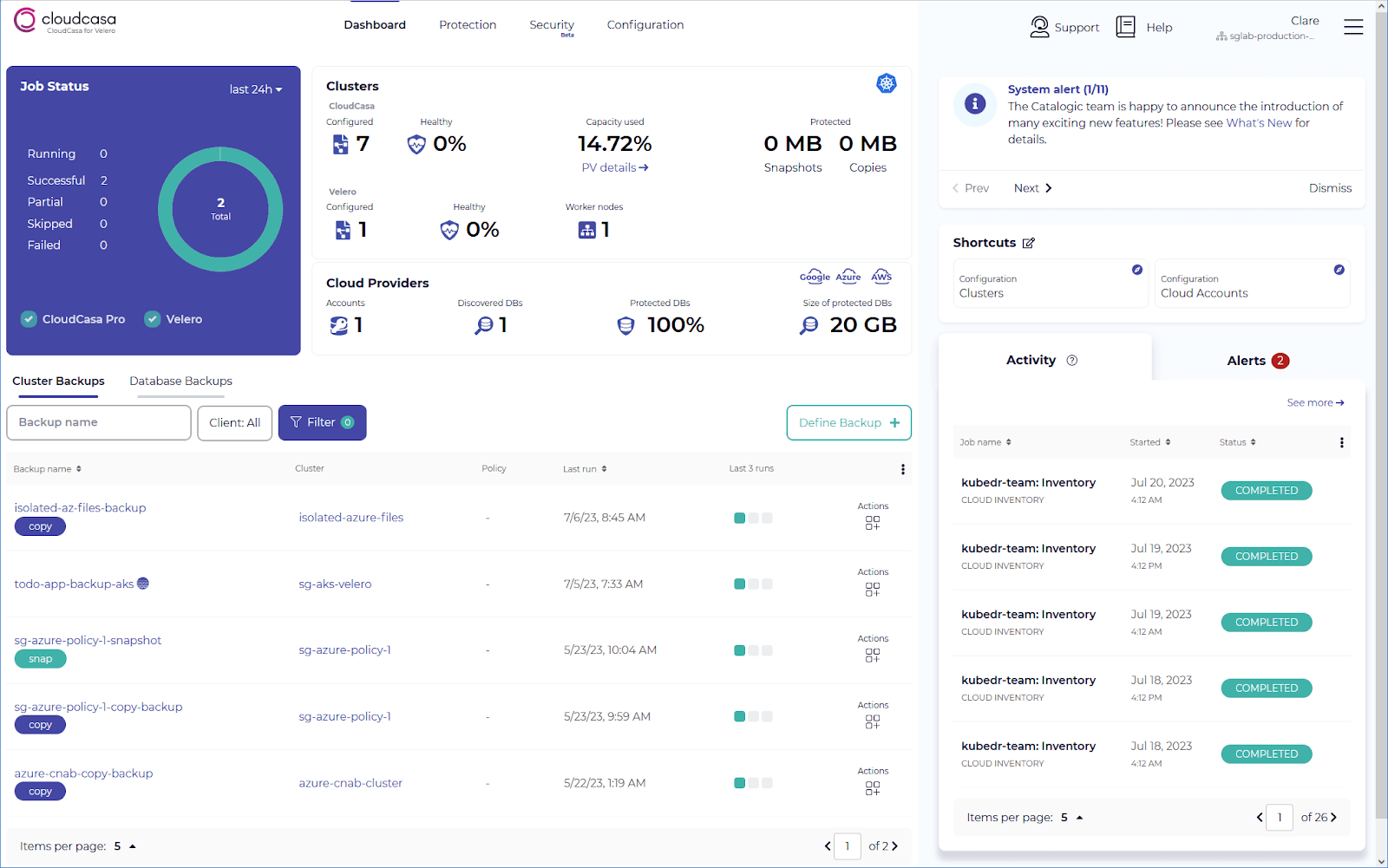 Caption: The CloudCasa dashboard, where it all comes together