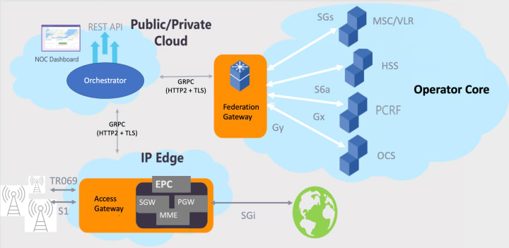 Federation Gateway that provides standard 3GPP interfaces to interact with MNO core network