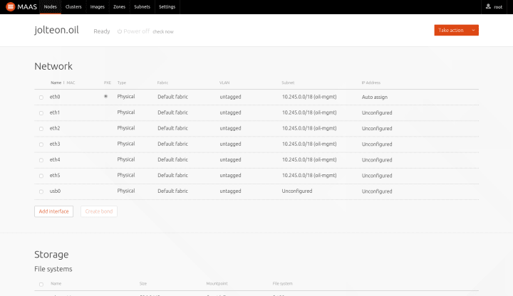 With today’s release of MAAS 1.9, nodes are now completely configurable, both through the Web interface and the API. Administrators can start from the main node list, pick any one in the Ready state, and configure it: