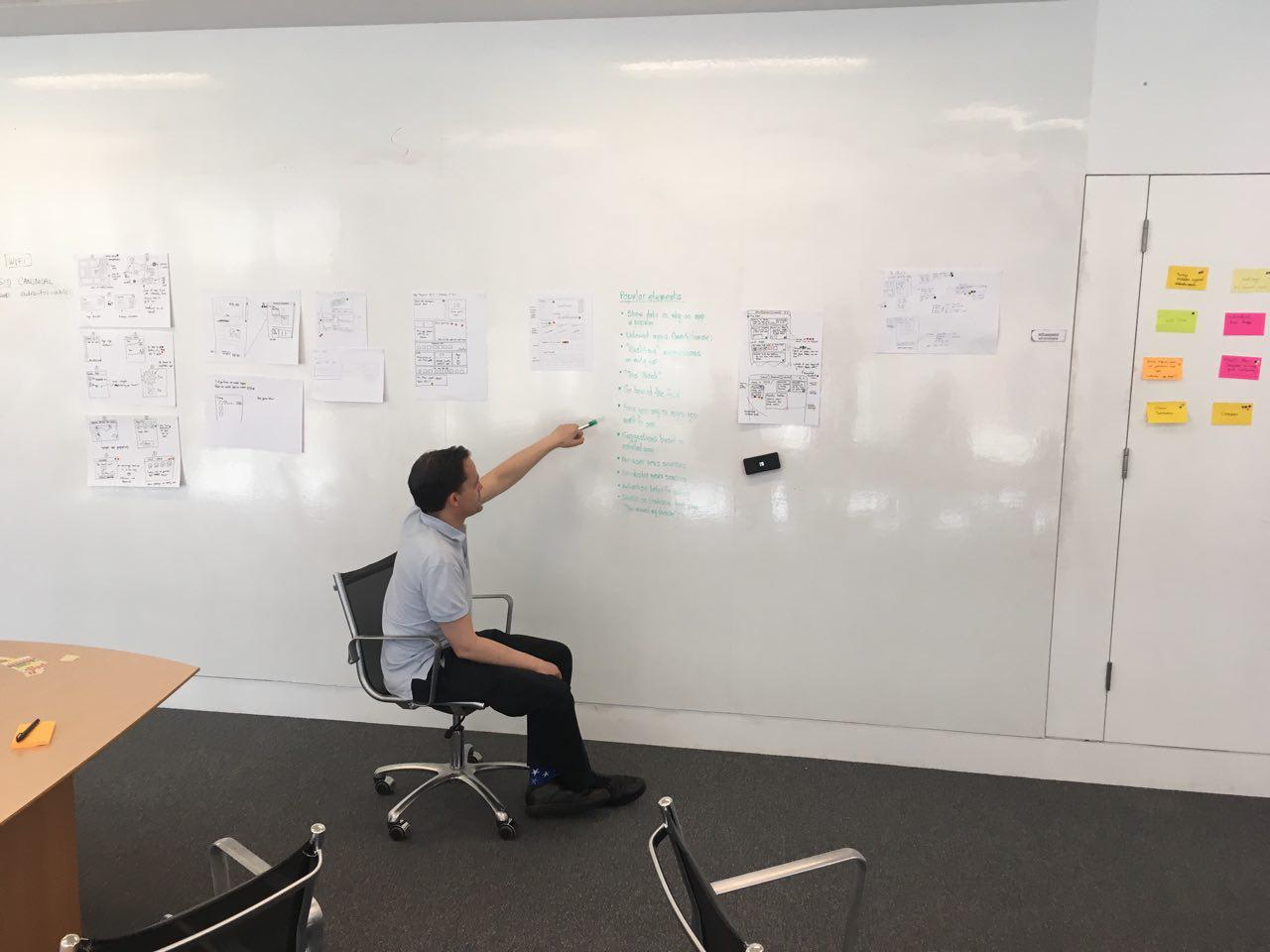 The next step in the process was to be talked through the ideas by the person who came up with them; why they thought certain actions were needed and how they thought it would work. It was interesting to see how different people approached what seemed like the same problem and to see what what they considered important.