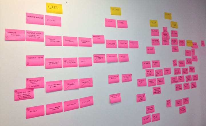 After I spoke to about fifteen people I summarised the key points from each stakeholder on post it notes and put them all up on a wall in one of the meeting rooms in the office. As I took out the duplicates and restructured the remaining notes, I began to see a familiar pattern.