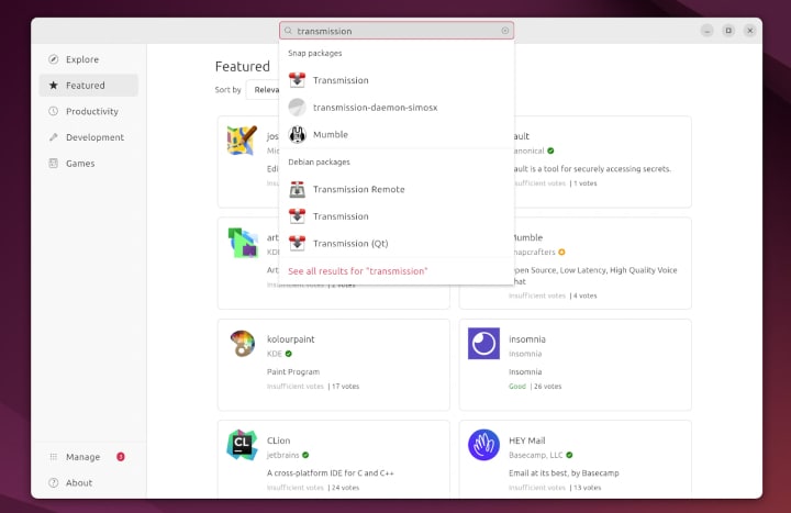 While the App Center defaults to a snap-centric view by default to enable us to deliver these usability features, you can still use it to find and install deb packages via the search toggles.