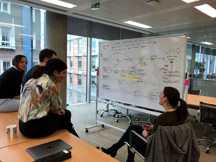 A full day of thinking about the problem and mapping it doesn’t come naturally, but it was certainly useful. We conduct frequent user research and usability testing, and are used to watching interviews and analysing findings, nevertheless the expert interviews and listening to different perspectives from within the company was very interesting and gave us a different type of insight that we could build upon during the sprint.