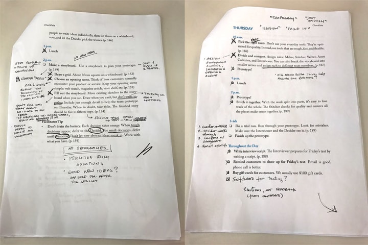 The Sprint Book notes that you can have one of two results at the end of your sprint: an efficient failure, or a flawed success. If your prototype doesn’t go down well with the participants, your team has only spent 5 days working on it, rather than weeks or potentially months — you’ve failed efficiently. And if the prototype receives positive feedback from participants, most likely there will still be areas that can be improved and retested — you’ve succeeded imperfectly.
