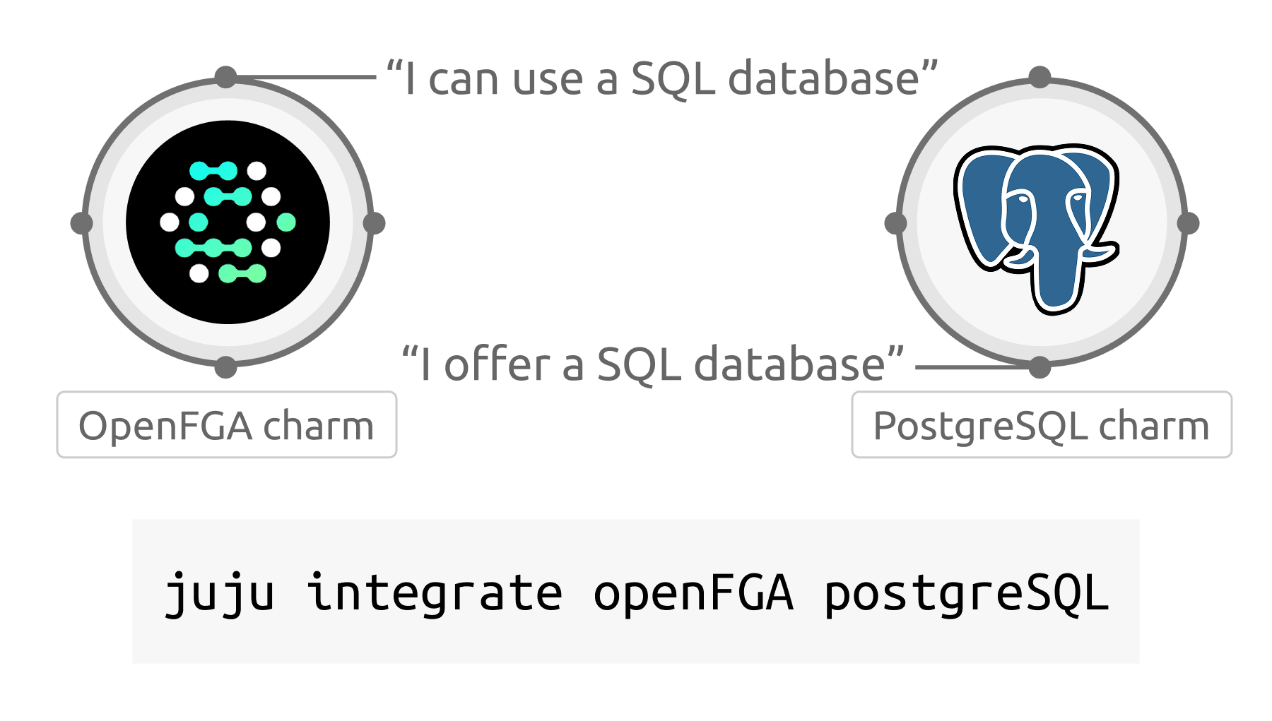 When your model contains two charms you wish to connect, all you have to do is to run juju integrate from the Juju controller and specify the two charms to be connected.